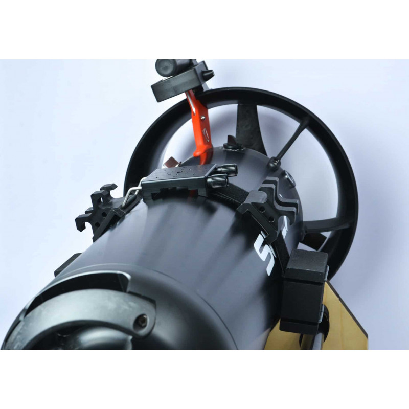 Držiak Action-CAM, bezpečný a odolný. Pojme aj väčšie fotoaparáty. Kompatibilný so všetkými modelmi DPV, veľmi jednoduchá inštalácia bez náradia. Dodáva sa štandardná 1/4" skrutka, plaváky a špeciálne držiaky pre podvodné svetlá. Vnútorný povrch popruhu je potiahnutý protišmykovým materiálom.