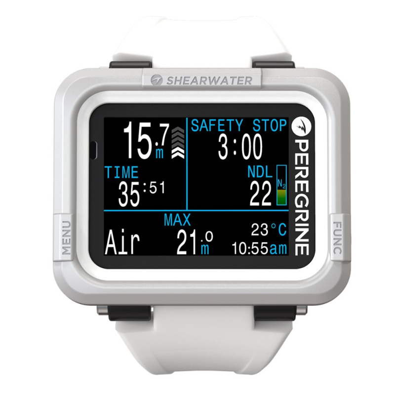 Shearwater Peregrine je potápačský počítač navrhnutý pre rekreačných potápačov, ktorí chcú rovnováhu medzi jednoduchosťou a pokročilými funkciami. Je vybavený 2,2-palcovým plnofarebným LCD displejom s prispôsobiteľným rozložením a farebnými schémami pre ľahkú čitateľnosť.